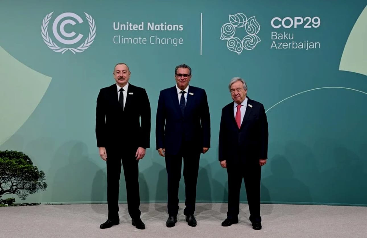 ترأس عزيز أخنوش، رئيس الحكومة المغربية، الوفد الوطني المشارك في الدورة التاسعة والعشرين لمؤتمر الأطراف في اتفاقية الأمم المتحدة الإطارية بشأن تغير المناخ (كوب 29)، الذي يُعقد في العاصمة الأذربيجانية باكو. وقد استُقبل أخنوش من قبل رئيس جمهورية أذربيجان، إلهام علييف، والأمين العام للأمم المتحدة، أنطونيو غوتيريش، في افتتاح هذا المؤتمر الدولي الهام، الذي يعد من أبرز المحافل العالمية لمناقشة قضايا البيئة وتغير المناخ.