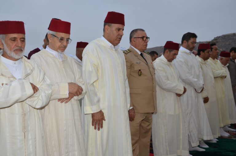 أدى السيد سعيد امزازي والي جهة سوس ماسة عامل عمالة أكادير إداوتنان، صلاة عيد الأضحى المبارك صباح اليوم الإثنين 17 يونيو الجاري مع جموع من المصلين في مصلى إحشاش بمدينة أكادير، مرفوقا بالكاتب العام للولاية و رئيس قسم الشؤون الداخلية و رئيس مجلس جهة سوس ماسة و رئيس المجلس العلمي الجهوي وعدد من الشخصيات المدنية والعسكرية وبعض المنتخبين و رجال السلطة، وأعيان المدينة، في أجواء روحانية يستشعر فيها المرء بعظمة العبادة وسموها.