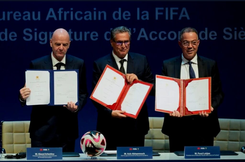 حفل التوقيع، الذي استضافه قصر المؤتمرات بمراكش، شهد حضور عدد من الشخصيات البارزة، من بينها رئيس الحكومة عزيز أخنوش، ورئيس الجامعة الملكية المغربية لكرة القدم فوزي لقجع، إلى جانب رئيس “فيفا” جياني إنفانتينو، ورئيس الكونفدرالية الإفريقية لكرة القدم باتريس موتسيبي. وجاءت هذه المناسبة مباشرة بعد اختتام حفل توزيع جوائز “الكاف” 2024، الذي نظمته المملكة بنجاح للمرة الثالثة على التوالي.