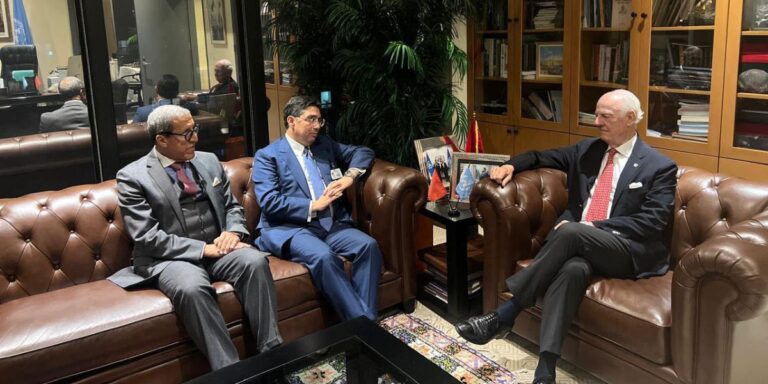 عقد وزير الشؤون الخارجية والتعاون الإفريقي والمغاربة المقيمين بالخارج، ناصر بوريطة، الاثنين بنيويورك، جلسة عمل مع المبعوث الشخصي للأمين العام للأمم المتحدة إلى الصحراء المغربية، ستافان دي ميستورا، وذلك بطلب من هذا الأخير.