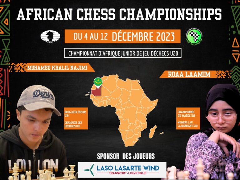 يشارك المنتخب المغربي للشطرنج في بطولة إفريقيا للشبان في رياضة الشطرنج وذلك في الفترة الممتدة بين 4 و 12 دجنبر .
