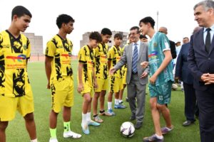 وحضر الحفل ممثل الجامعة الملكية المغربية لكرة القدم، السيد عبد المالك أبرون، رئيس لجنة البنيات التحتية وعضو المكتب المديري للجامعة.