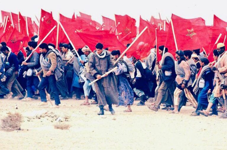 ففي السادس من نونبر سنة 1975، انطلقت جماهير المتطوعين من كل فئات وشرائح المجتمع المغربي، ومن سائر ربوع الوطن، بنظام وانتظام صوب الأقاليم الصحراوية لتحريرها من براثن الاحتلال الإسباني، بقوة الإيمان وبأسلوب حضاري سلمي فريد من نوعه.