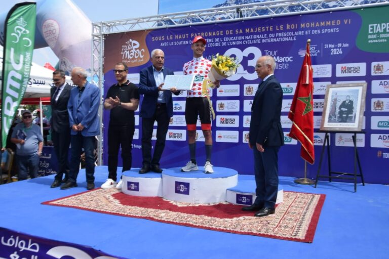 وجاء تتويج الفرنسي أكسيل ناربون، الذي انتزع القميص الأصفر من الإرتيري برهان ناتانييل، المحترف في صفوف فريق(بايكوز بليد ايزي سبورت) التركي، خلال المرحلة التاسعة، التي ربطت أمس السبت بين مدينتي مكناس والرباط، بتوفره على مجموع 31 س و22 د و 26 ث، علما بأنه دخل في مرحلة اليوم في المركز 23 ، بنفس التوقيت الذي سجله مواطنه ريان بولهوات ( فريق فاندي الفرنسي) بزمن قدره 2 س و 22 د و 49 ث ، والذي ظفر بلقب أفضل دراج شاب في الطواف.