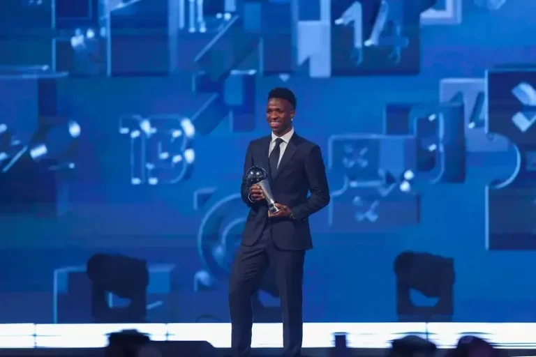 ونجح فينيسيوس، الذي تألق مع النادي الملكي هذا الموسم وحقق معه لقبي الدوري الإسباني “لا ليغا” ودوري أبطال أوروبا، في تعويض خسارته لجائزة الكرة الذهبية التي تمنحها مجلة “فرانس فوتبول”، والتي كانت من نصيب الإسباني رودري.