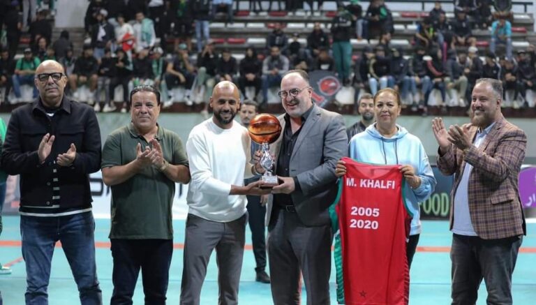 وبالمناسبة تسلم مصطفى الخلفي درع التكريم من طرف السيد مصطفى اوراش رئيس الجامعة الملكية المغرببة لكرة السلة ،بحضور الحاج مقداد امين مال الجامعة ورئيس نادي الرجاء الرياضي لكرة السلة وعدة شخصيات ،في لحظة اعتراف بلاعب استتنائي في تاريخ كرة السبة الوطنية اسمه مصطفى الخلفي ،الذي قرر دخول مجال التدريب من بوابة نادي الرجاء الرياضي .