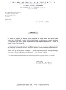 أصدرت فاني كولين، محامية الدولي المغربي أشرف حكيمي، بيانًا توضيحيًا عقب قرار إحالة القضية المرتبطة بموكلها إلى المحاكمة، أكدت فيه أن الملف يعتمد أساسًا على تصريحات المشتكية دون توفر أدلة مادية تدعم الاتهامات الموجهة إليه.