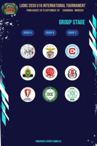 احتفالا بذكرى ثورة الملك والشعب وعيد الشباب المجيد تنظم جمعية العيون الخضراء بملعب الفوسفاط بخريبگة بشراكة مع البرنامج الوطني لتطوير كرة القدم ما بين 28 و31 غشت 2025 النسخة الأولى من الدوري الدولي “أسود 2030” لفئة أقل من 16 سنة بمركب الفوسفاط بخريبكة، و جمعية العيون الخضراء المنظمة للحدث الكروي الدولي الهام والفريد من نوعه بجهة بني ملال خنيفرة هي منظمة تنشط في مدينة خريبكة، المغرب، يرأسها الصحفي الخريبكي بالقناة الرياضية سفيان الراشيدي. وهي معروفة بتنظيمها للفعاليات الرياضية مثل الدوري الدولي لكرة القدم لأقل من 16 سنة في نسخته الأولى عام 2024، نسخة اللاعب المغربي”عبد الحق نوري” والذي فاز به فريق ريال بتيس، والذي عرف مشاركة ريال بتيس الإسباني، أجاكس أمستردام الهولندي، أكاديمية محمد السادس، والفريق المحلي أولمبيك خريبكة، وعرف أيضا استحسانا منقطع النظير من طرف مجموعة من المدراء التقنيون، والأطر الوطنية والدولية، ومسؤولون جامعيون، الذين أشادوا بالمستوى التقني والتنظيمي للدورة، وتهدف الجمعية إلى تجميع المواهب الكروية وتوفير منصة للفرق المحلية والدولية للمنافسة في أحداث هامة في مجال كرة القدم، ويهدف الدوري الدولي إلى تعزيز وتثمين وتطوير مكانة كرة القدم القاعدية وإتاحة الفرصة أمام المواهب الصاعدة للاحتكاك بتجارب دولية متنوعة على مختلف الأصعدة. وذلك من خلال استقطاب مواهب كروية من مختلف المدارس الكروية.