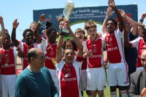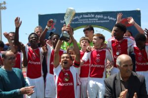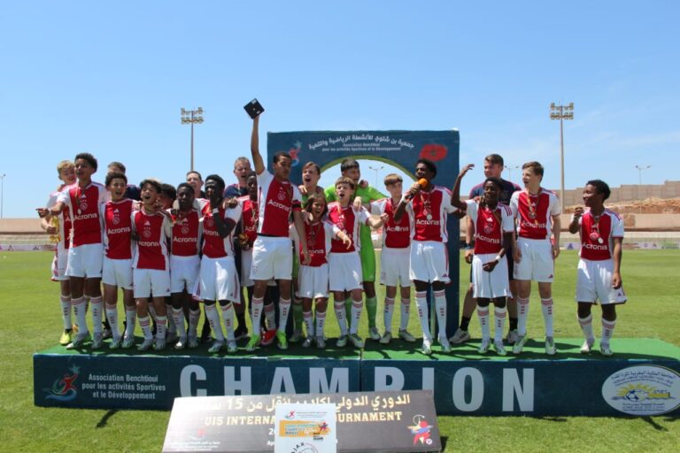 أسدل الستار صباح اليوم الأحد 21 ابريل الجاري، على منافسات الدوري الدولي لكرة القدم لفئة اقل من 15 سنة، المنظم من طرف جمعية بنشتوي للانشطة الرياضية والتنمية يومي 20 و 21 ابريل 2024 بالملعب الكبير لأكادير، بإجراء المباراة النهائية التي جمعت بين فريقي أياكس امستردام الهولندي واكاديمية محمد السادس وانتهت بفوز الفريق الهولندي بهدفين لصفر وتتوجيه بلقب هذه الدورة، التي عرفت مشاركة ستة فرق ويتعلق الأمر بكل من فرق اياكس امستردام الهولندي، لوهافر الفرنسي، اكاديمية محمد السادس لكرة القدم، حسنية أكادير، منتخب عصبة سوس ماسة، وفريق الفتح الرياضي المتوج بالدورة الماضية.
